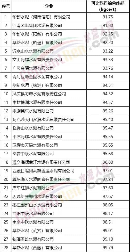 2020 年度重點用能行業能效“領跑者”擬入選企業名單中包括華新水泥、孟電水泥、海螺水泥、金圓水泥、中材水泥、中聯水泥、冀東水泥、天瑞水泥在內的28家水泥企業,詳情名單如下: