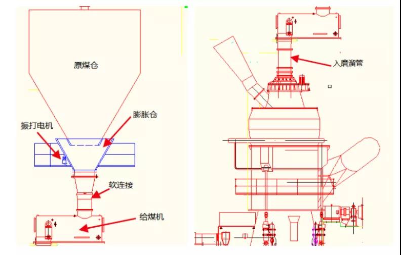 b,在膨脹倉外壁安裝振打電機,每間隔一段時間振動一次,保證原煤不堆積。