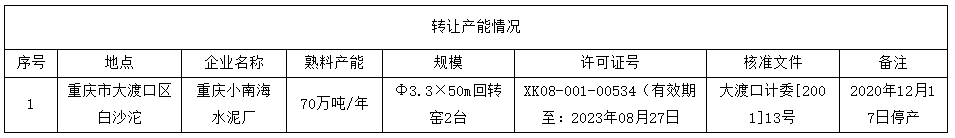 標的系70萬噸/年干法水泥熟料生產線產能指標,擬按現狀以不低于轉讓底價11000萬元協議或競價整體轉讓,標的基本情況如下: