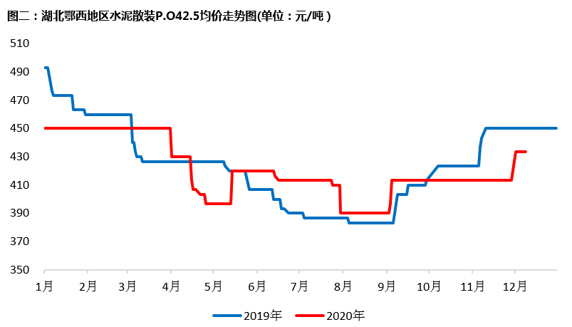 鄂東地區(qū)水泥價格武漢、黃石等地區(qū)已完成三輪上漲,目前武漢地區(qū)主流品牌P.O42.5散裝水泥市場報價470-480元/噸,鄂西宜昌地區(qū)仍處于二輪漲價剛落實完成階段,主流品牌P.O42.5散裝水泥市場價格為430-440元/噸。年關(guān)將至,部分工程已經(jīng)加快施工進度,近段時間各區(qū)域水泥銷量整體較好,但水泥價格繼續(xù)上行動力略顯不足,預計短時間湖北地區(qū)水泥價格會保持偏穩(wěn)運行。