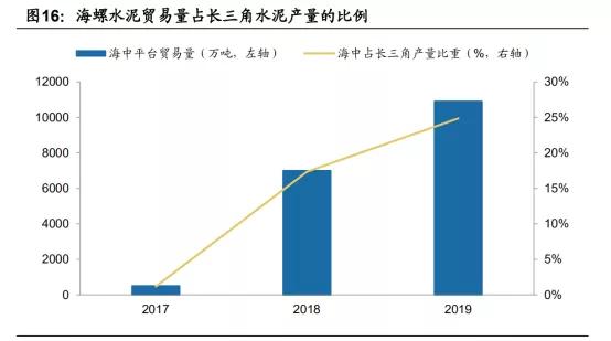 安徽海中貿易公司的設立進一步強化了行業自律,拓寬了海螺水泥在長三角市場的護城河,讓公司的大本營更加穩固——2017年平臺貿易量僅占長三角水泥產量的1.5%,這一比例在2018年提升至17.3%,2019年進一步提升至24.8%;熟料貿易公司一是更好控制銷售渠道、占領市場,二是更好防止外來水泥和熟料的無序競爭,穩定長三角水泥價格,三是更好保障自己熟料產能充分發揮,鞏固自己成本優勢。