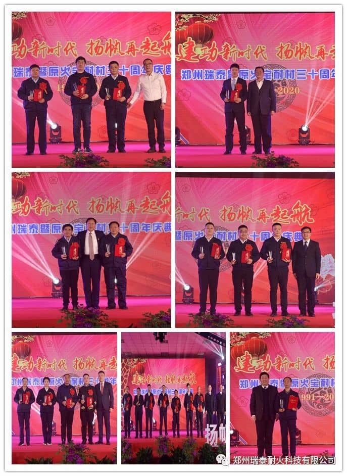 在鄭州瑞泰30年歷程里,有一批陪伴鄭州瑞泰一路陽光一路風雨的瑞泰人,他們見證了鄭州瑞泰的成長與發(fā)展,他們堅守崗位、腳踏實地,為企業(yè)的蓬勃發(fā)展默默地發(fā)揮著自己的光和熱。鄭州瑞泰取得的30年輝煌成績的同時,也不曾忘記兢兢業(yè)業(yè)為企業(yè)發(fā)展做出過貢獻的員工。慶典活動上,瑞泰科技總經(jīng)理陳海山、常務副總經(jīng)理袁林,鄭州瑞泰黨委書記、董事長李泉侑及相關領導為20名突出貢獻獎員工進行頒獎。