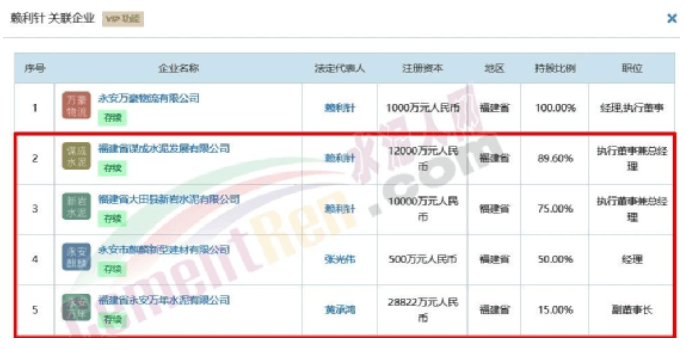 據了解,大田新巖水泥建設日產5000噸熟料水泥生產線技改項目于2020年7月6日開工建設,項目總投資12.5億元,占地面積約400畝,建筑面積24萬平方米,主要建設一條全國工藝裝備技術水平領先的節能環保型的新型干法水泥生產線及配套建設7.5兆瓦余熱發電、固廢處理項目。據查,福建省大田縣新巖水泥有限公司法人賴利針同時還擔任福建省謀成水泥發展有限公司、福建省永安萬年水泥有限公司等多家水泥企業主要負責人。