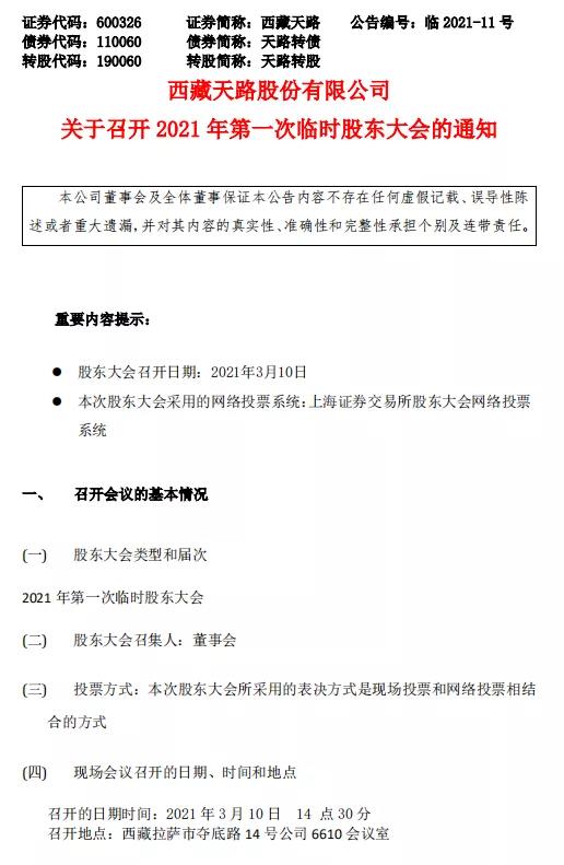 來自于上市公司的消息稱,22日晚間,西藏天路(600326)連發(fā)《第五屆監(jiān)事會第三十四次決議公告》、《關(guān)于選舉職工監(jiān)事的公告》、《西藏天路股份有限公司2021年第一次臨時股東大會通知》等三條公告。