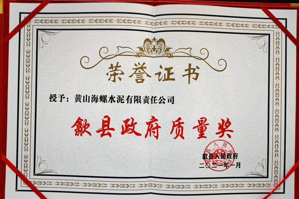 2021年2月19日下午,歙縣縣委、縣政府召開的縣經濟開發區改革創新動員大會上又傳出喜訊:黃山海螺水泥公司再獲“2020年度工業稅收10強”和歙縣政府第三屆質量獎。黃山海螺總經理周安夢現場領獎,代表公司接受表彰。