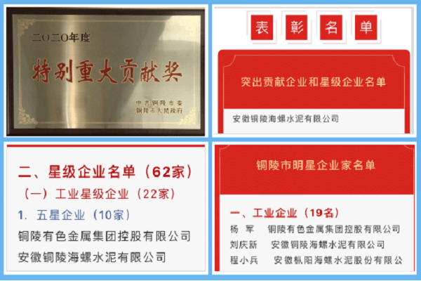 銅陵海螺榮獲銅陵市“特別重大貢獻獎”等多項榮譽稱號