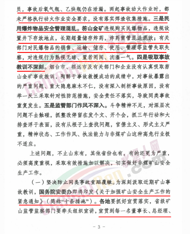 同時(shí)要深刻汲取事故教訓(xùn),加強(qiáng)動(dòng)火作業(yè)和爆破管理,加快推進(jìn)安全基礎(chǔ)提升,嚴(yán)格落實(shí)非煤礦山安全監(jiān)管責(zé)任,加大淘汰退出力度,堅(jiān)決防止同類(lèi)事故重蹈覆轍。