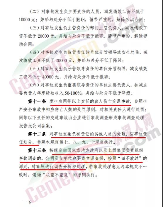據水泥人網了解,金隅冀東內部一直都有規定,凡發生事故的企業從上至下全部處以金額不等的罰款,年終獎勵也按比例減少,相關責任人甚至會被降職或者辭退。