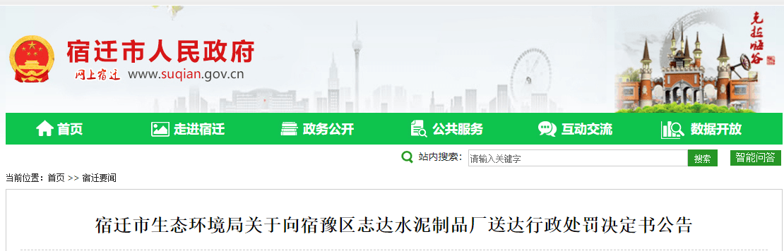 宿環罰字〔2021〕(1)7號《宿遷市生態環境局行政處罰決定書》顯示2020年10月2日,宿遷市生態環境局執法人員對宿豫區志達水泥制品廠污染防治情況開展檢查。 現場檢查時企業未生產,但有工人正在進行裝車作業,場地上堆存有水泥磚和部分原材料。企業未取得建設項目環境影響報告文件審批手續,也未開展環保“三同時”竣工驗收。