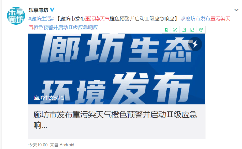 日前,河北省廊坊、邯鄲、保定、衡水、滄州、唐山、秦皇島等多個城市發布重污染天氣橙色預警,要求工地停工、水泥停產、礦山開采,大宗物流運輸國四車禁運。