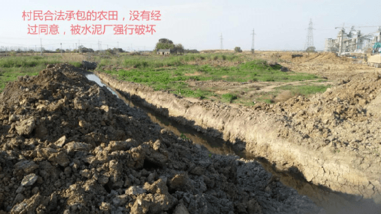 “村民被成功趕走,下一步就是這里的土地。不需要任何合法手續,也不管耕地還是荒地,只要擴張需要,一切都可以被犧牲。有些土地是村民同意租給了水泥廠,有些還在村民手里,并且小麥已經長得很高,還有兩個生產隊共有的水塘。再說租不是征用,怎么能隨便毀壞耕地修成河道?不過無論租還是征用,都沒有任何合法手續。