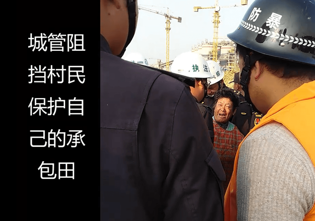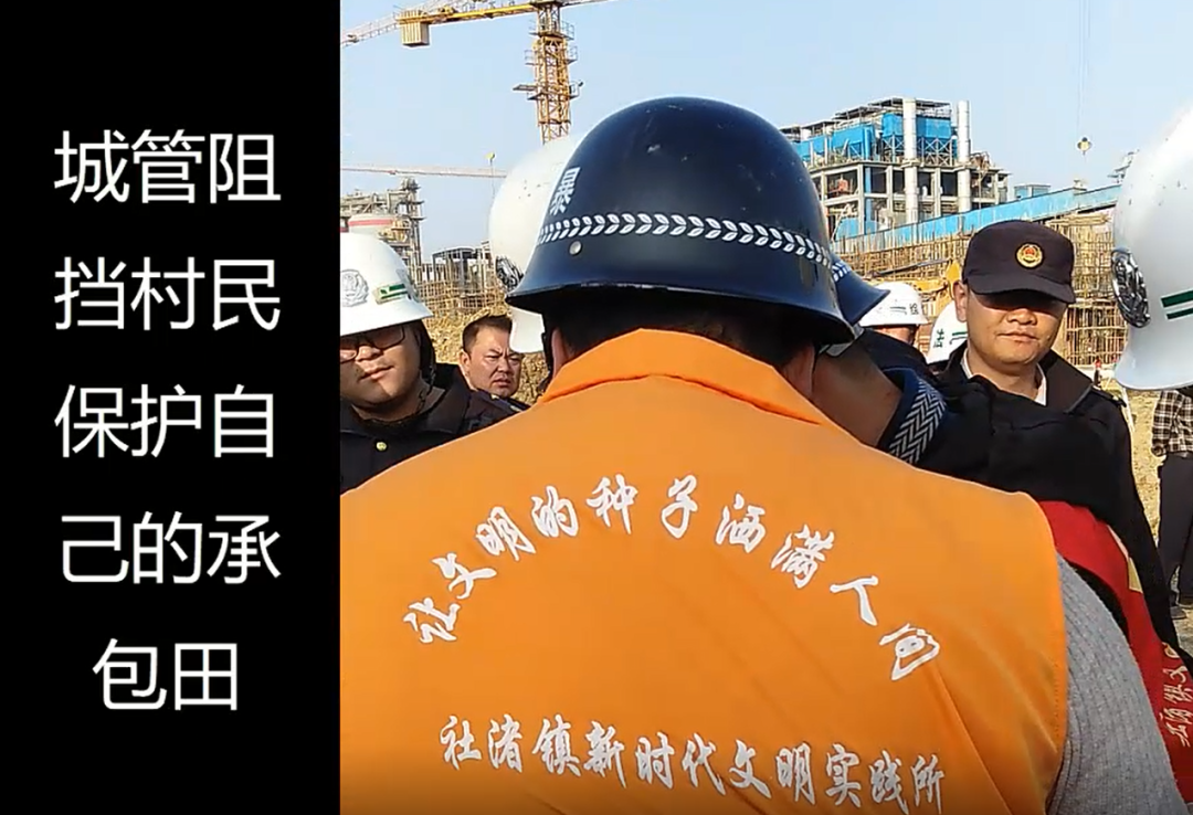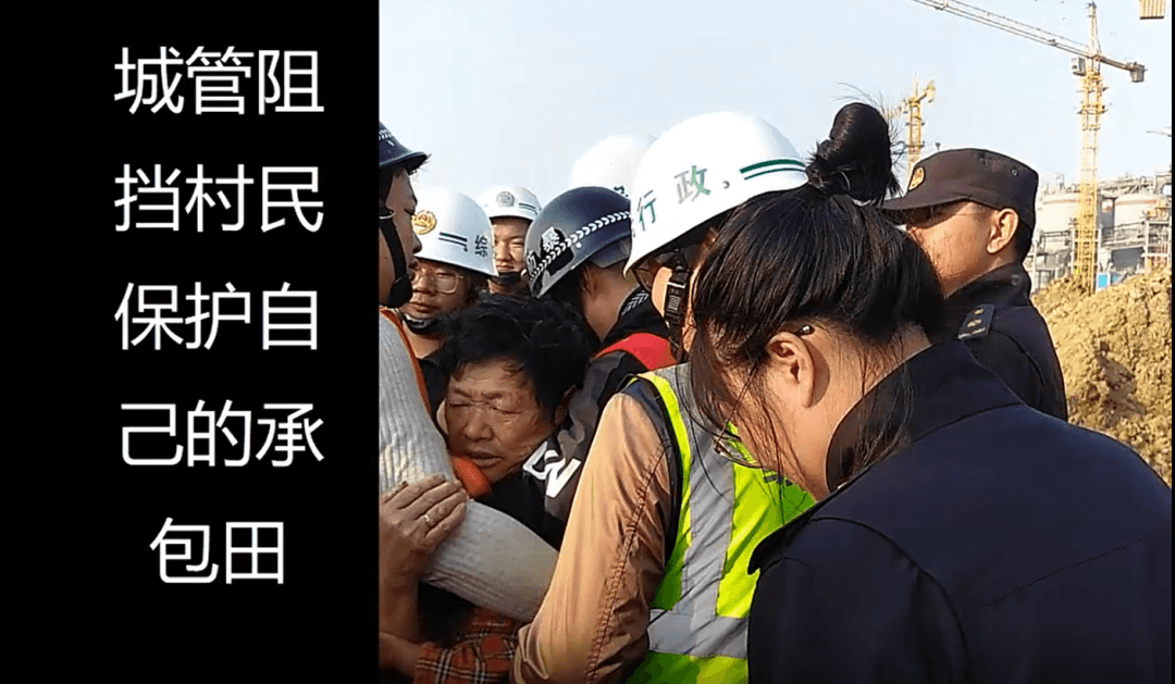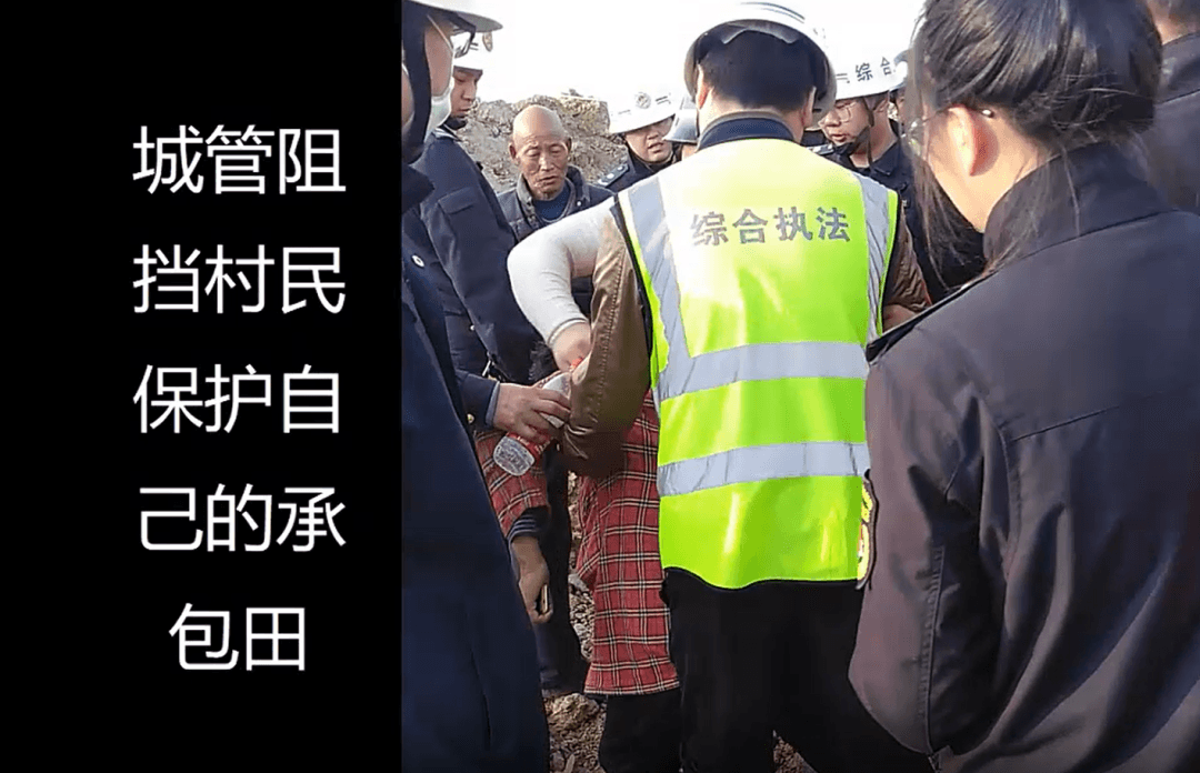 2020年11月4日,城管人員把我們村民推倒,導致幾個村民受傷。持續十幾天,城管阻攔村民保護自己的農田。合法承包土地的農民成了非法,非法破壞農田的水泥廠卻被城管保護。