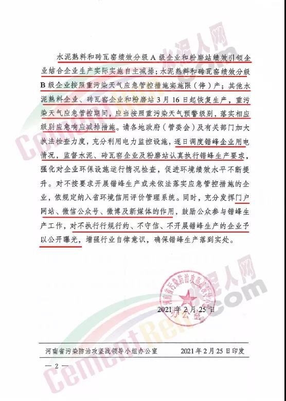 重要通知!河南省水泥行業最新錯峰生產計劃發布!