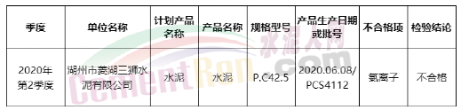 浙江產品質量監督抽查1個批次PC42.5水泥不合格