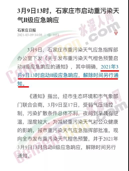 3月9日,石家莊市重污染天氣應(yīng)急指揮部辦公室下發(fā)《關(guān)于發(fā)布重污染天氣橙色預(yù)警啟動(dòng)Ⅱ級(jí)應(yīng)急響應(yīng)的通知》,其中明確,2021年3月9日13時(shí)啟動(dòng)Ⅱ級(jí)應(yīng)急響應(yīng),解除時(shí)間另行通知。《通知》指出,經(jīng)市生態(tài)環(huán)境和市氣象部門(mén)聯(lián)合會(huì)商,3月9日至17日,受弱氣壓場(chǎng)控制,污染擴(kuò)散條件總體不利,夜間到早晨有逆溫,濕度較大。為減輕重污染天氣對(duì)公眾健康的影響,報(bào)市重污染天氣應(yīng)急指揮部批準(zhǔn),現(xiàn)向全市發(fā)布重污染天氣橙色預(yù)警,并于2021年3月9日13時(shí)啟動(dòng)Ⅱ級(jí)應(yīng)急響應(yīng),解除時(shí)間另行通知。