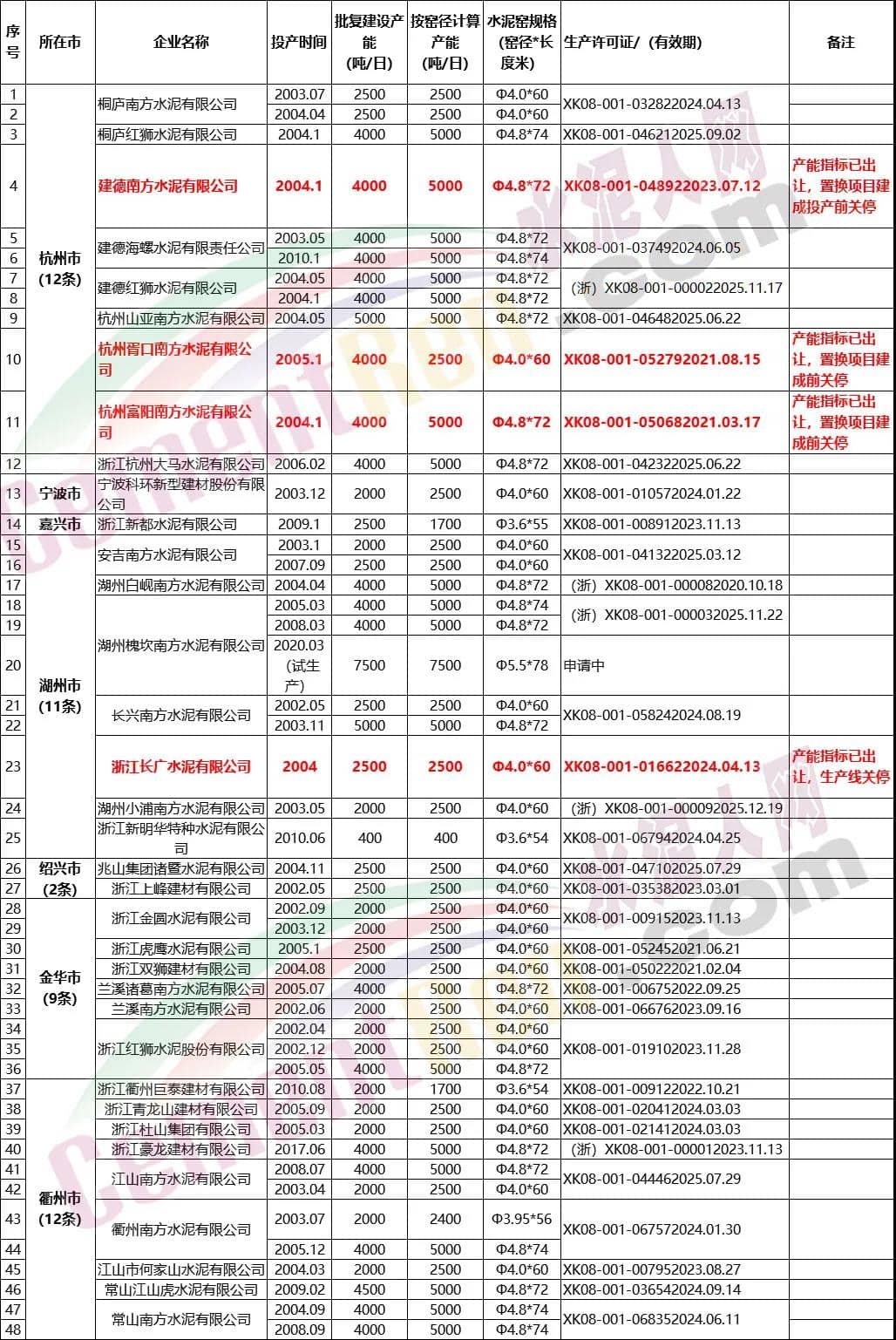 浙江水泥熟料生產線清單發布!多個產能指標已出讓!