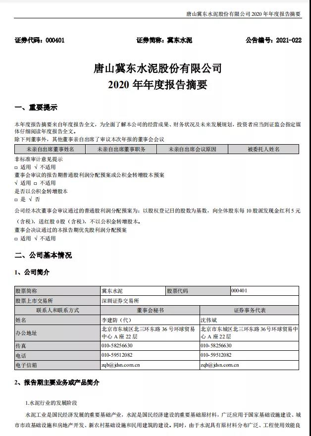 冀東水泥計劃2021年全年實現營業收入358億元!