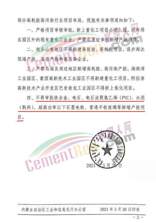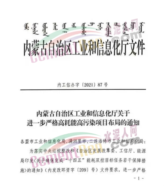 日前,內蒙古自治區工業和信息化廳發布《關于進一步嚴格高耗能高污染項目布局的通知》稱,為落實中央巡視整改和《自治區發展改革委、工信廳、能源局印發<關于確保完成“十四五”能耗雙控目標任務若干保障措施>的通知》(內發改環資字(209)號)文件要求,進一步嚴格部分高耗能高污染行業項目布局,不再審批鐵合金、電石、電石法聚氯乙烯(PVC)、水泥(熟料)、超高功率以下石墨電極、普通平板玻璃等新增產能項目。