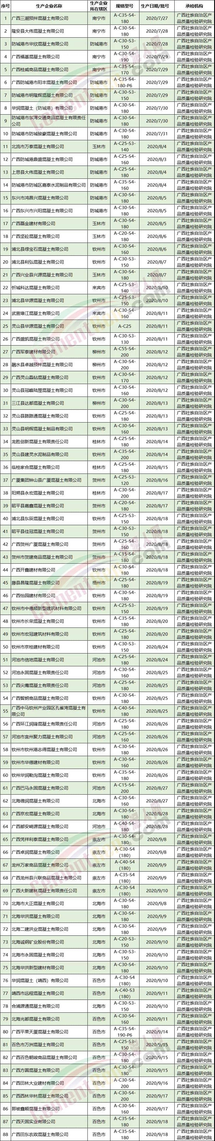 2.預(yù)拌混凝土產(chǎn)品質(zhì)量廣西監(jiān)督抽查連續(xù)兩次抽查不合格企業(yè)名單