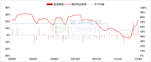 截至4月9日,全國水泥熟料企業(yè)開工率90.15%,較上周上升0.73%;熟料線運轉(zhuǎn)率76.28%,較上周上升1.92%;水泥熟料產(chǎn)能利用率75.45%,較上周上升1.37%。