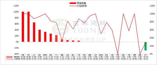 上周華南地區(qū)熟料產(chǎn)能利用率較上周上升6.25%,廣東、海南部分水泥企業(yè)結(jié)束停窯檢修,恢復(fù)生產(chǎn),產(chǎn)能利用率有所增加;