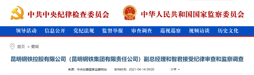 4月14日中央紀委國家監委網站發布要聞消息:昆鋼黨委書記、董事長、云南水泥建材集團有限公司董事長董瑜等多人接受審查調查。詳情如下: