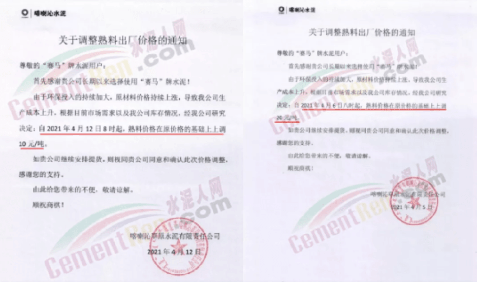 七日之內(nèi)兩次上調(diào)熟料價(jià)格,累計(jì)漲價(jià)30元/噸。企業(yè)調(diào)價(jià)函提到,由于環(huán)保投入的持續(xù)加大,原材料價(jià)格持續(xù)上漲,導(dǎo)致公司生產(chǎn)成本上升。