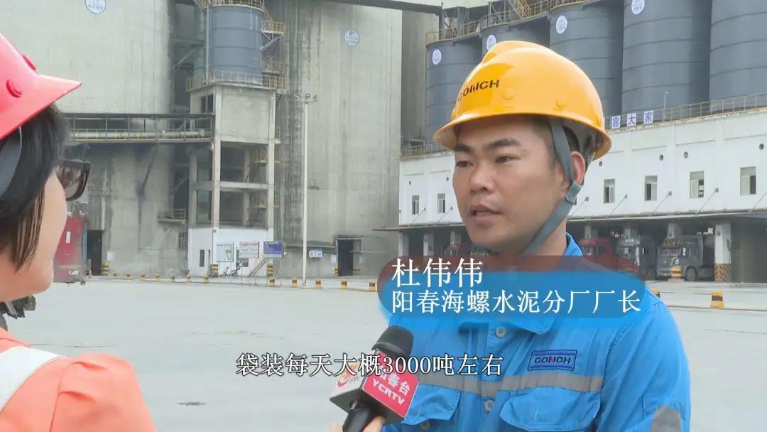 【采訪】陽春海螺水泥分廠廠長 杜偉偉:袋裝發運每天大概3000噸,散裝這一塊大概在18000噸左右,加起來發運在21000噸左右。