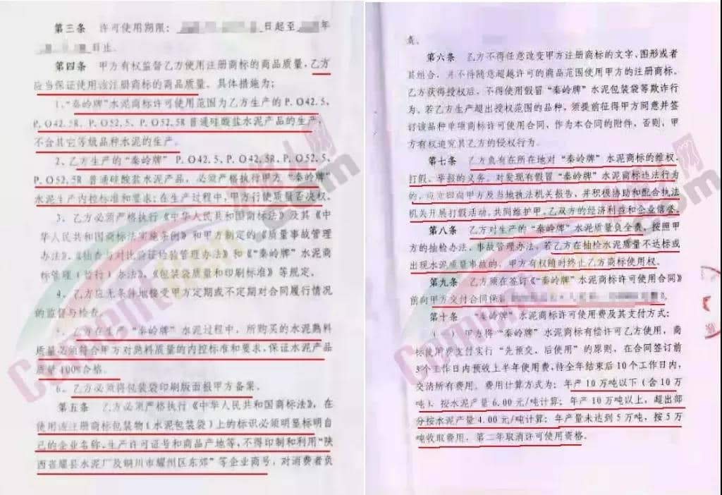 據水泥人網了解,其品牌授權生產經營協議中有明確質量及品牌使用要求。商標使用者應保證使用該注冊商標的商品質量,具體措施為,“秦嶺牌”水泥商標許可使用范圍為商標使用者生產的各標號普通硅酸鹽水泥產品;商標使用者生產的“秦嶺牌”各標號水泥,必須嚴格執行商標使用者“秦嶺牌”水泥生產內控標準和要求。在生產過程中,耀縣水泥廠行使質量否決權;商標使用者在生產“秦嶺牌”水泥的過程中,所購買的水泥熟料質量必須符合耀縣水泥廠對熟料質量的內控標準和要求,保證水泥產品質量100%合格。乙方(被授權方)負有在所在地對“秦嶺牌”水泥經營商標的維權、打假、舉報的義務。