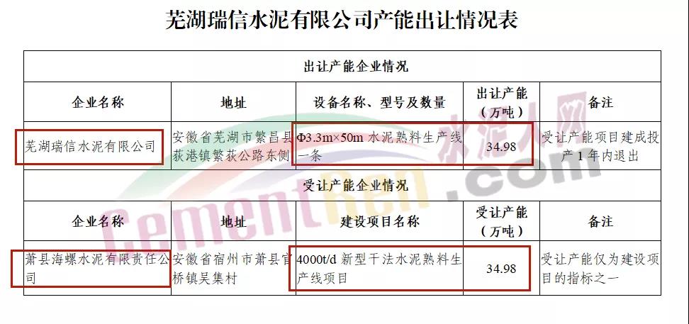 附件:蕪湖瑞信水泥有限公司產能出讓情況表.doc