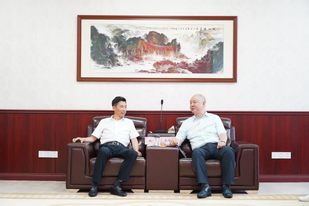 媧石集團董事長魏華山(左一)與港航實業執行董事張智勇(右一)交談