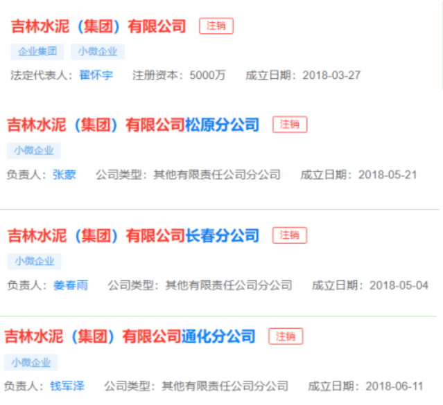 公開(kāi)數(shù)據(jù)顯示,吉林水泥(集團(tuán) )有限公司及下屬松原分公司、長(zhǎng)春分公司、通化分公司等多家企業(yè)均處于“注銷(xiāo)”狀態(tài)。