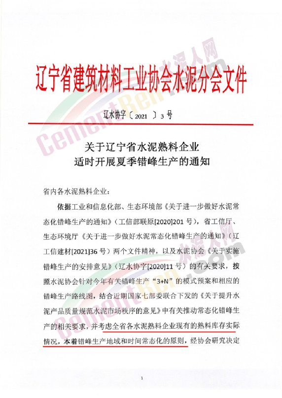 遼寧省熟料生產(chǎn)線首次夏季錯峰時間表
