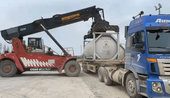 H30801次列車編組49輛N70型平車,裝載98個22N8型罐式集裝箱,在新朔鐵路二道河站組織裝車,經大準線-豐聯線-京包線運輸,途徑呼鐵局、太原局、北京局,終到豐臺西站。
