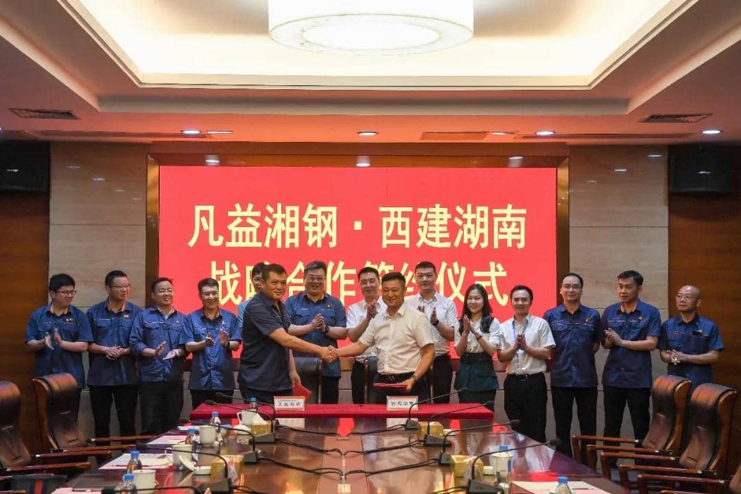 6月9日上午,中建西部建設湖南有限公司與湖南凡益湘鋼新材料有限公司在湘潭鋼鐵集團有限公司的總部簽訂了戰(zhàn)略合作協(xié)議。