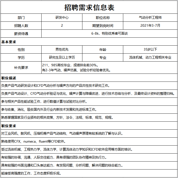 崗位一:氣動分析工程師