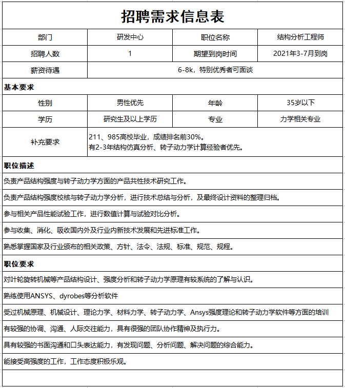 崗位二:結構分析工程師