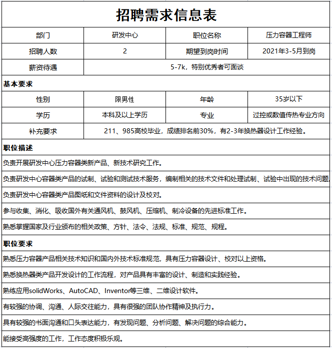 崗位四:壓力容器工程師