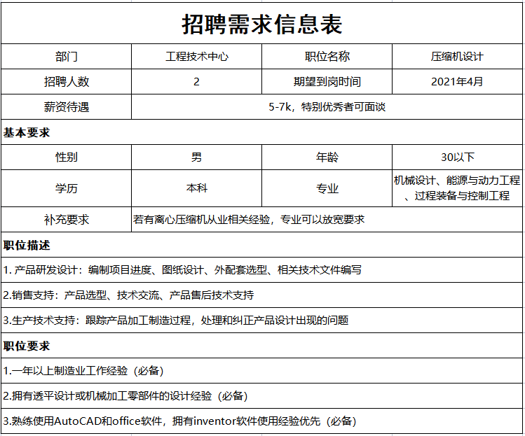 崗位五:壓縮機設計