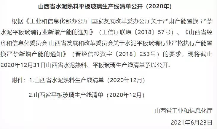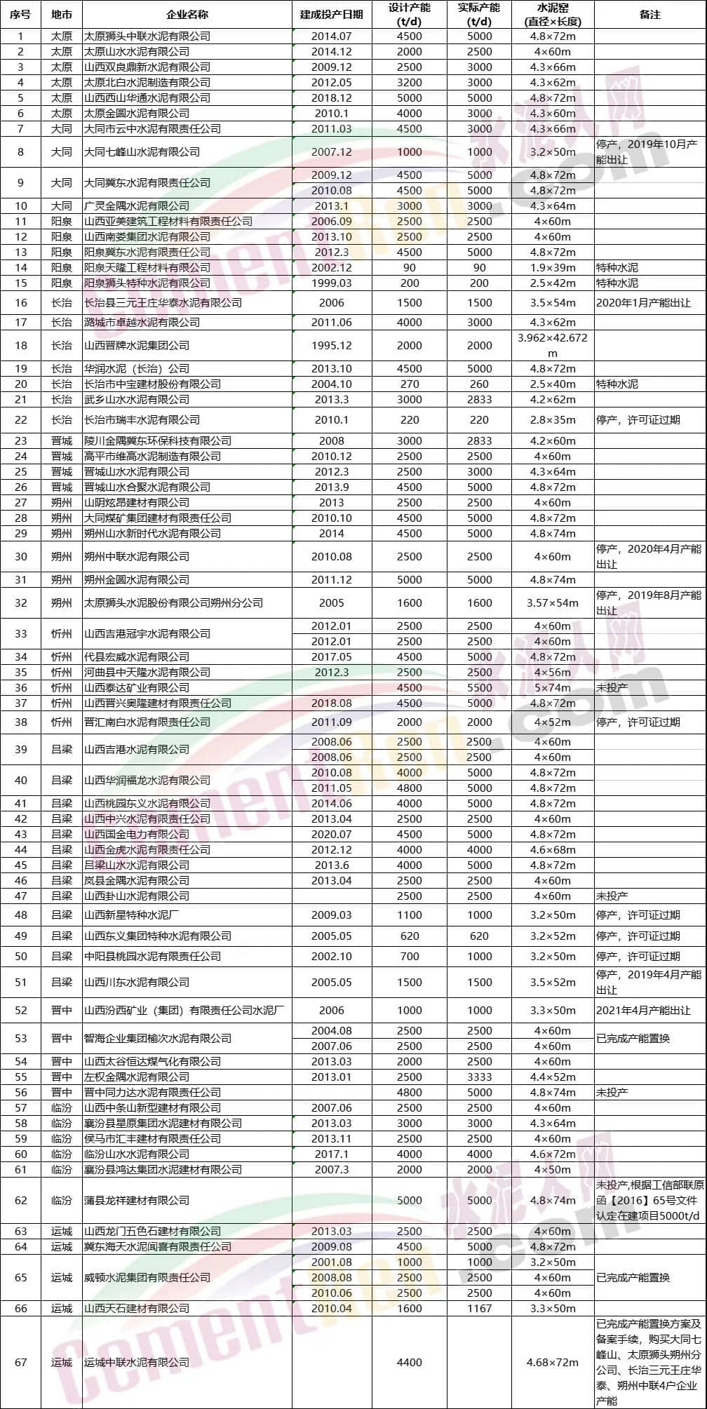 日前,山西省工信廳將截止至2020年12月31日的水泥熟料生產線清單予以公開。