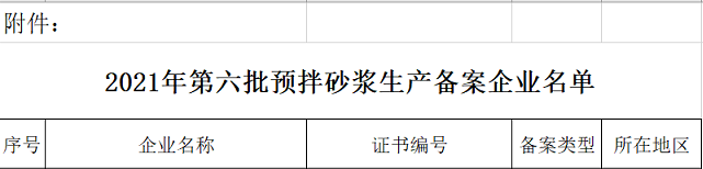 附件:2021年第六批預拌砂漿生產備案企業名單