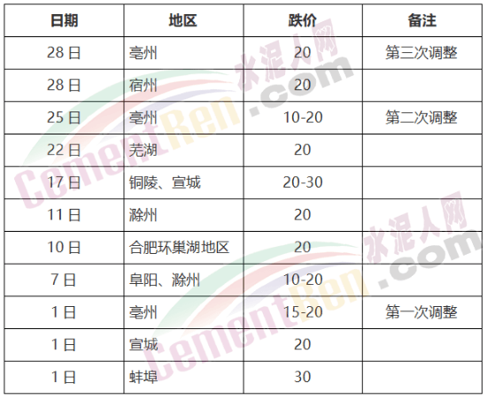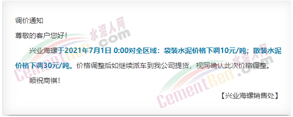 日前廣西扶綏海螺、興業(yè)海螺分別通知自即日起下調(diào)水泥價(jià)格10-30元/噸。