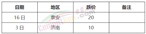 山東泰安地區(qū)水泥價(jià)格下跌20元/噸,現(xiàn)主流品牌P.O42.5散裝水泥出廠價(jià)格在435-450元/噸。市場需求疲軟,價(jià)格偏弱運(yùn)行。濟(jì)南地區(qū)下跌10元/噸,主流品牌P.O42.5散裝市場報(bào)價(jià)在450-470元/噸。