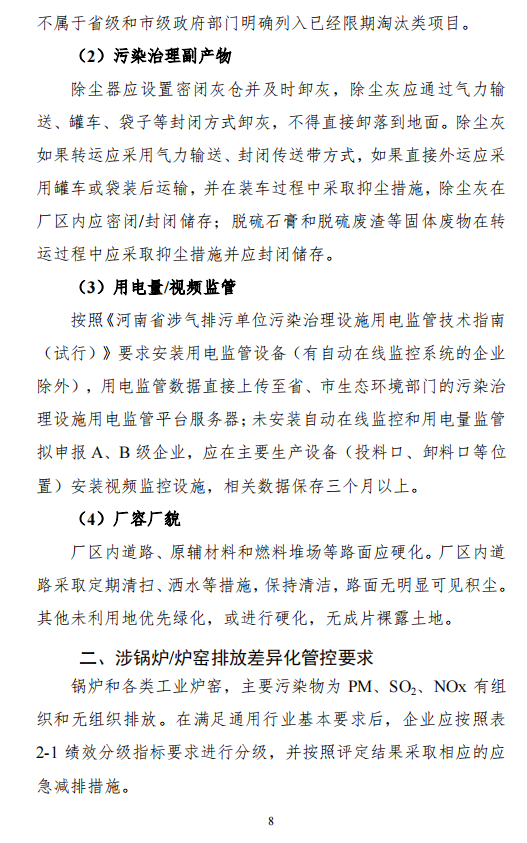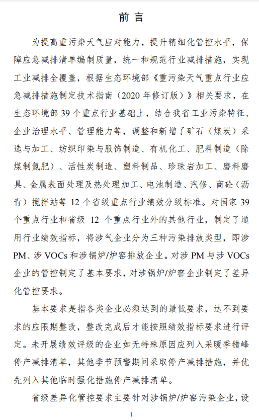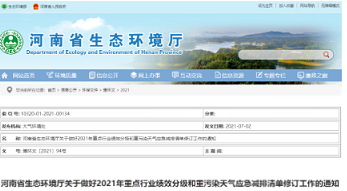 日前,河南省生態環境廳發布《關于做好2021年重點行業績效分級和重污染天氣應急減排清單修訂工作的通知》稱:為貫徹落實生態環境部《重污染天氣重點行業應急減排措施制定技術指南(2020年修訂版)》要求,突出精準治污、科學治污、依法治污,積極應對重污染天氣,提升環境精細化管理水平,優化營商環境,促進重點行業企業高質量發展,省生態環境廳組織有關科研單位編制了《河南省重污染重點行業應急減排措施制定技術指南(2021年修訂版)》和《河南省重污染天氣通用行業應急減排措施制定技術指南(2021年修訂版)》,并提出相關要求,請一并抓好落實。