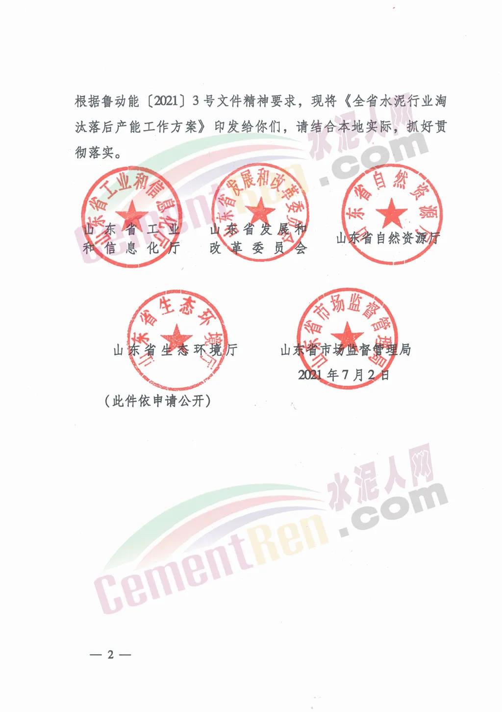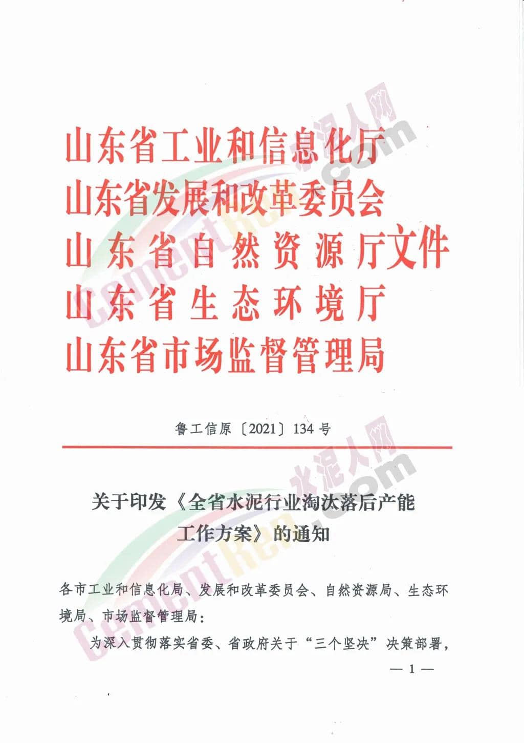 7月2日,山東省工信廳、發改委、自然資源廳、生態環境廳、市場監管局等五個部門聯合印發《全省水泥行業淘汰落后產能工作方案》。