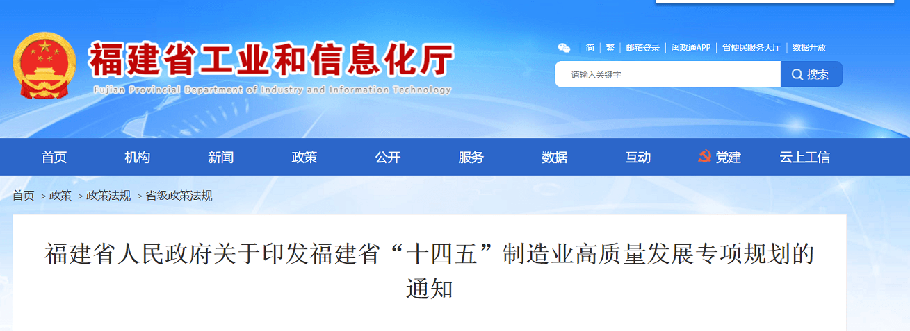 7月7日,福建省發布“十四五”制造業高質量發展專項規劃。
