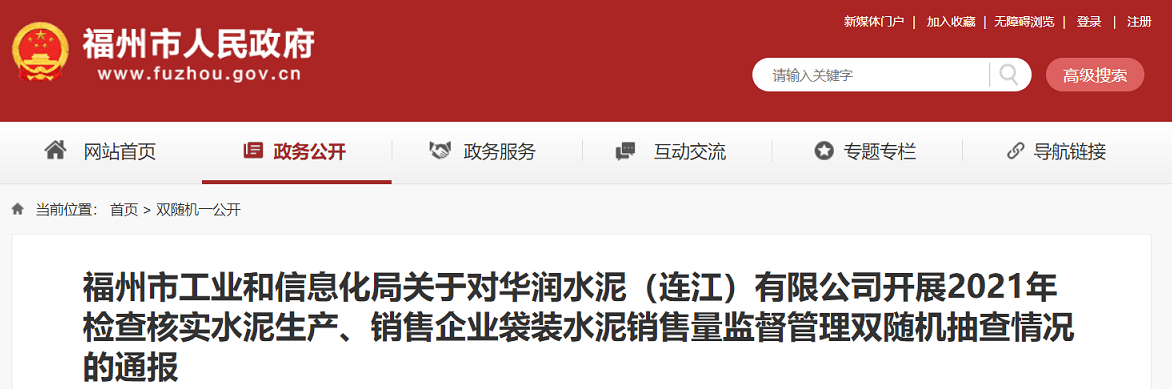近日,福州市人民政府通報了福州市工信廳對華潤水泥袋裝水泥檢查結果,如下:
