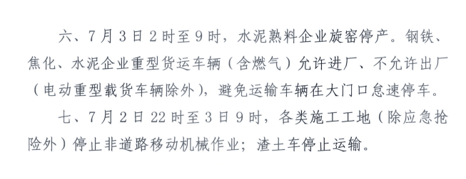 據水泥人網了解,唐山地區7月2日也曾發布類似的管控通知,要求7月3日2時至9時唐山市水泥熟料企業停窯限產。水泥企業重型貨運車輛只許進廠不許出廠。7月2日22時至3日9時施工工地停止非道路移動機械作業,渣土車停運。