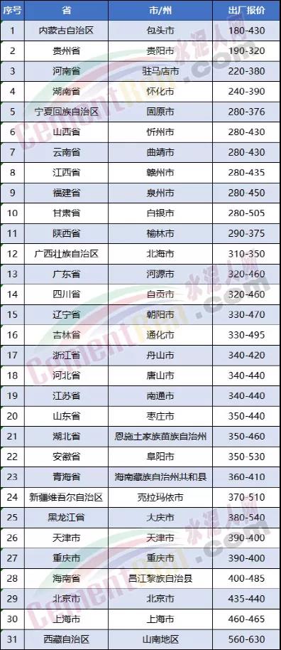 從全國水泥價格來看,目前全國大部地區水泥價格保持在300~400元/噸之間,相對往年來說基本持平。