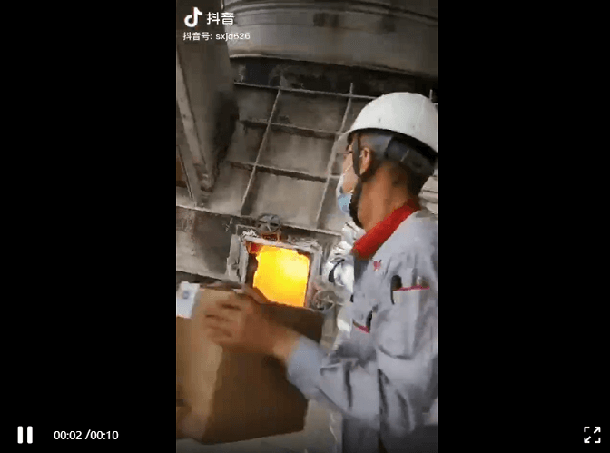 從視頻可見(jiàn),集中銷毀地位于金隅冀東水泥鳳翔工廠。